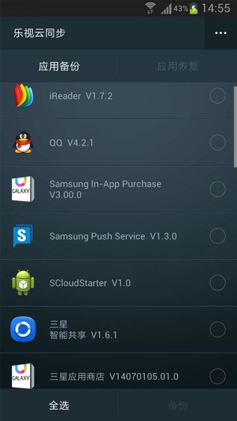 2、在原有android手机中下载云同步工具,备份所有应用;