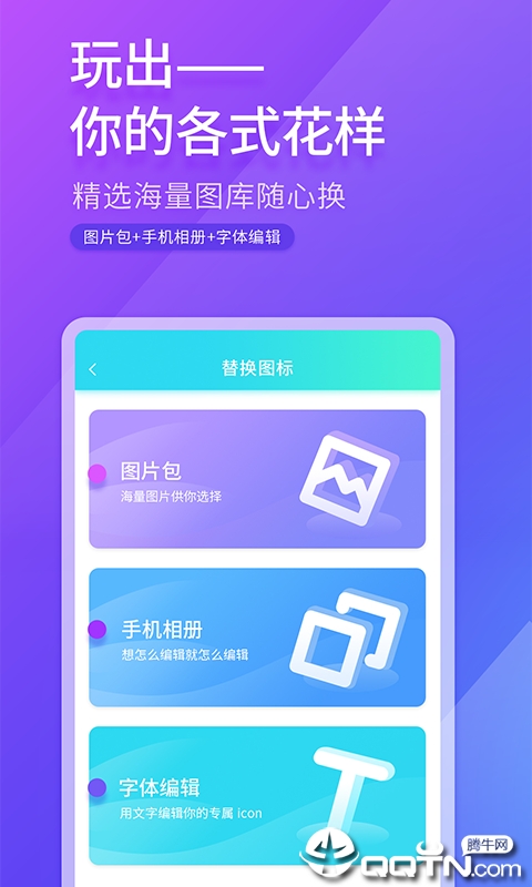 免费换图标是一款非常好用的手机图标更换应用,这里能够的将桌面上app的图标换成任意头像,你的图标由你来决定。感兴趣的朋友们快来下载体验吧。