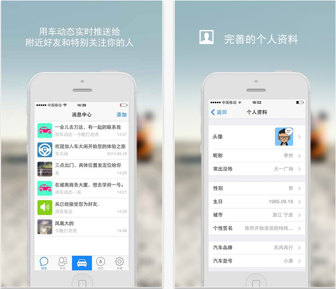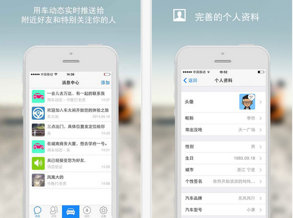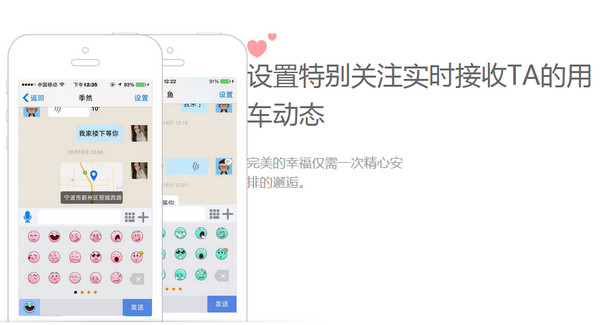 1、定位推送:用户发布用车动态系统根据定位周边附近好友位置进行消息精准推送。
