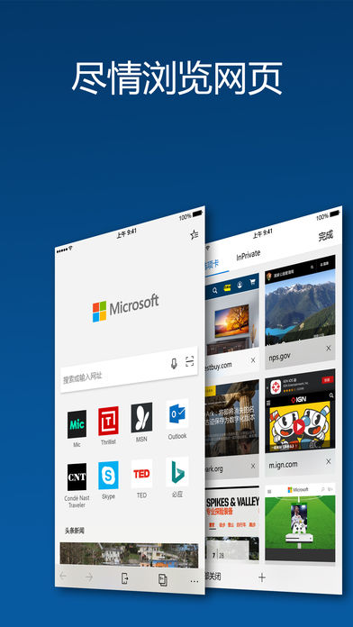 InPrivate:使用 InPrivate 模式浏览后,电脑上将不会保存浏览数据(例如历史记录、临时 Internet 文件和 Cookie)。
