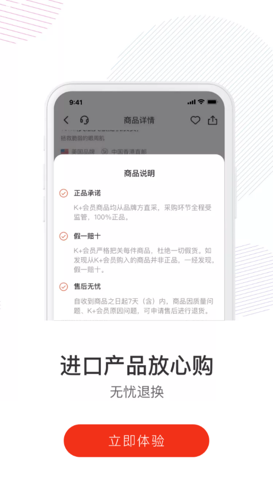 ———— 全球好货 会员特价 ————1. K+会员体系上线,专属新特权免费送;2. 推出优选商品专区,高成长值,快速成为会员;3. 全新任务玩法,好友下单再获额外奖励;4. 分享有礼,免费领好物;5. 修复已知bug—————————使用中遇到任何问题,请通过“个人中心-我要反馈”或“在线客服”告诉我们,我们会尽快与您联系!