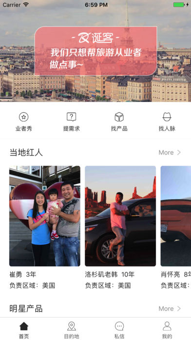 诞客s版是一个旅行服务软件,采取多中心化的旅游新模式,拉近从业者与消费者之间的距离,便于消费者甩开所有旅游中间环节,直接与认可的资深旅游从业者在线互动。