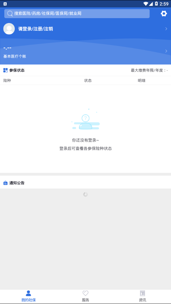 以各险种缴费信息、个人账户、待遇发放、政策通知公告等查询业务为主要核心功能的APP