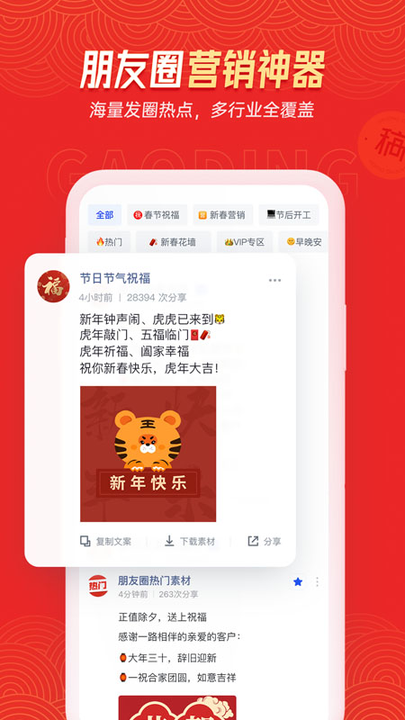 不需要复杂的操作就能帮你一键生成创意小视频、快速制作精美图片海报,助你引爆、抖音、快手等社交渠道,让你的社交生活更加精彩!