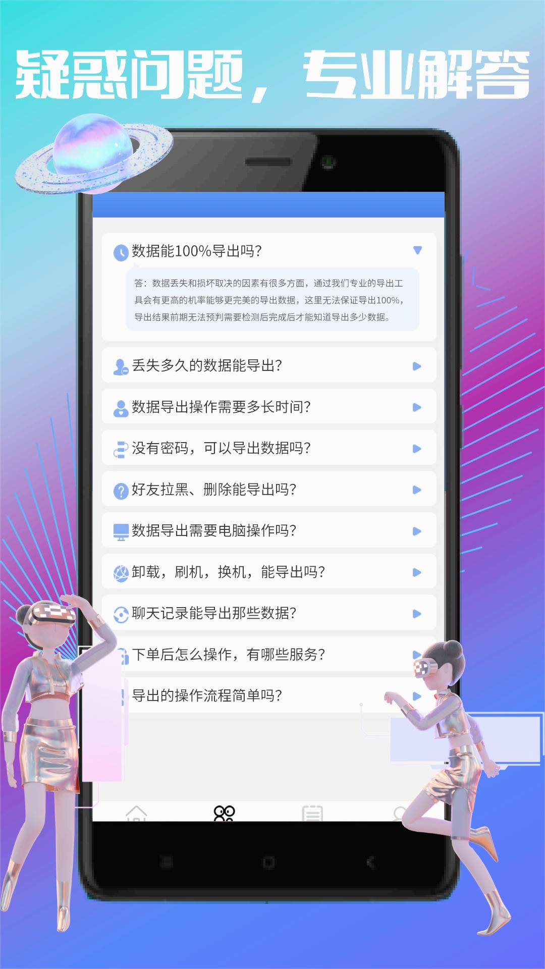 通过卓掌柜这款数据恢复大师软件,可以将聊天记录恢复、微信照片恢复、联系人恢复、及视频文档收藏等进行恢复, 有在线专业工程师辅助找回数据。数据丢失,越早恢复越好,整个恢复服务过程严格保密,不会泄露用户任何隐私。