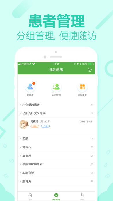 可以对患者进行分组管理,便捷查看患者健康档案,随时追踪病情