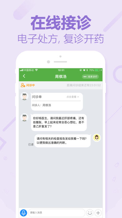 「」实现语言、和图文实时沟通,自定义在线时间、病情查看等功能;