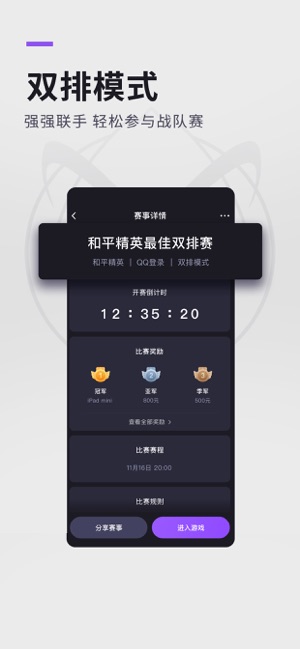 3、创新的品牌自建赛事玩法:搭建平民化的电竞生态,随时随地一键举办赛事
