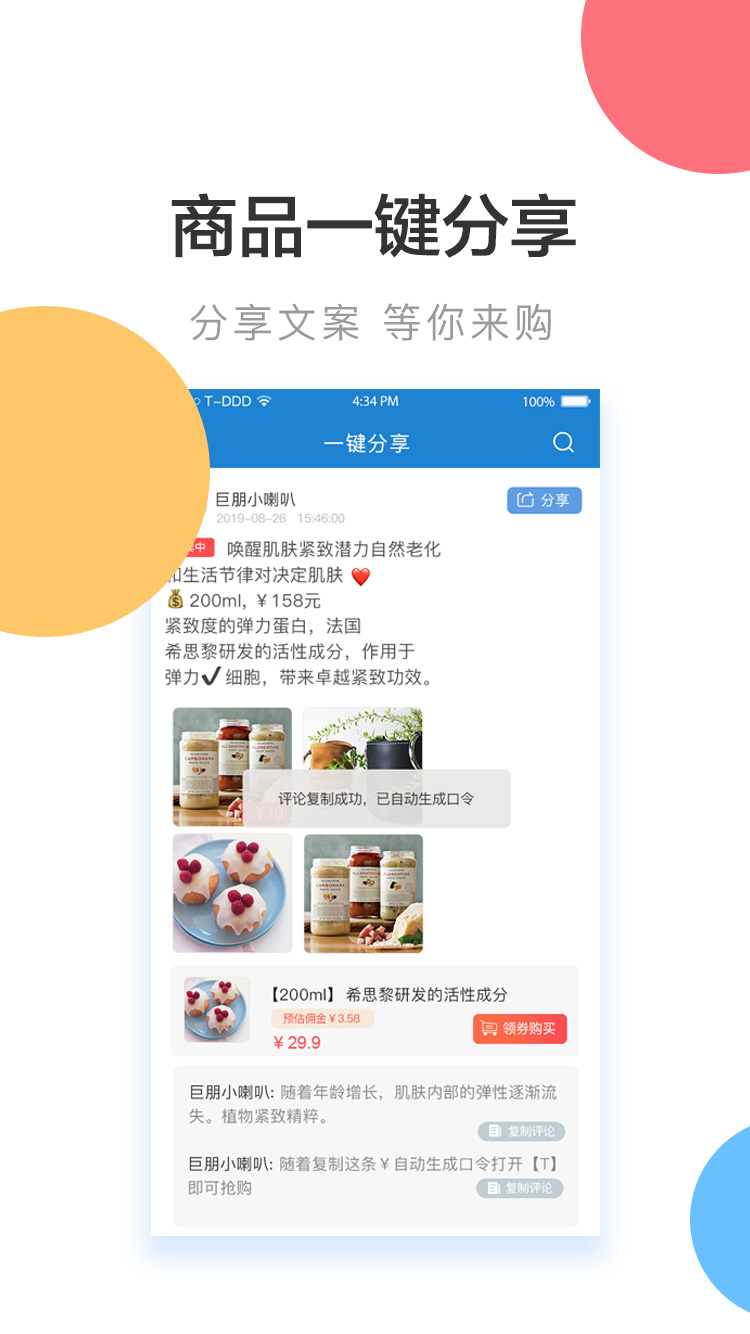 精选品类、对接商家,严格验货,将精选的商品给用户推荐,为用户节省选品比价的时间。