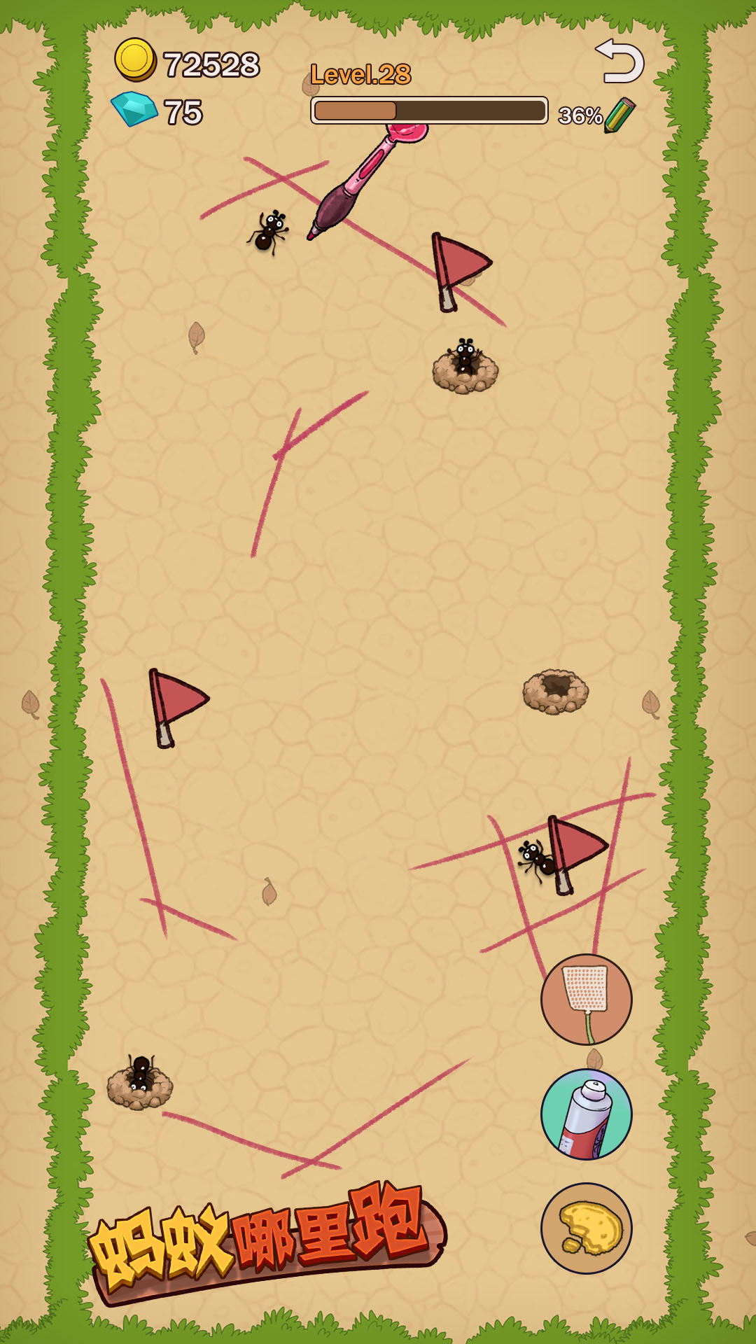 根据蚂蚁的数量解锁铅笔,持续画线将一只只蚂蚁困住,丰富的关卡挑战在等待着你。