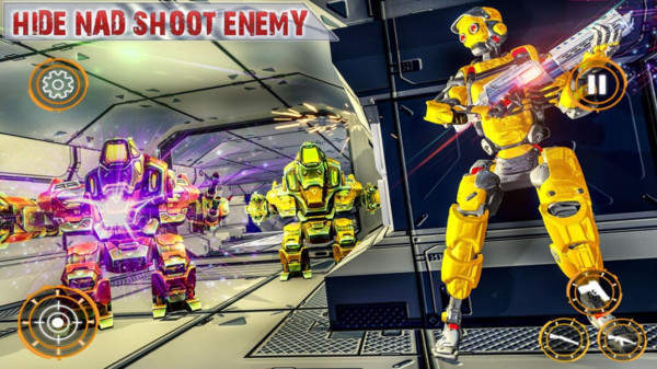 3、在线与其他机器人展开竞技,体验热情有趣的枪战对抗,众多炫酷武器和枪械任你选择。