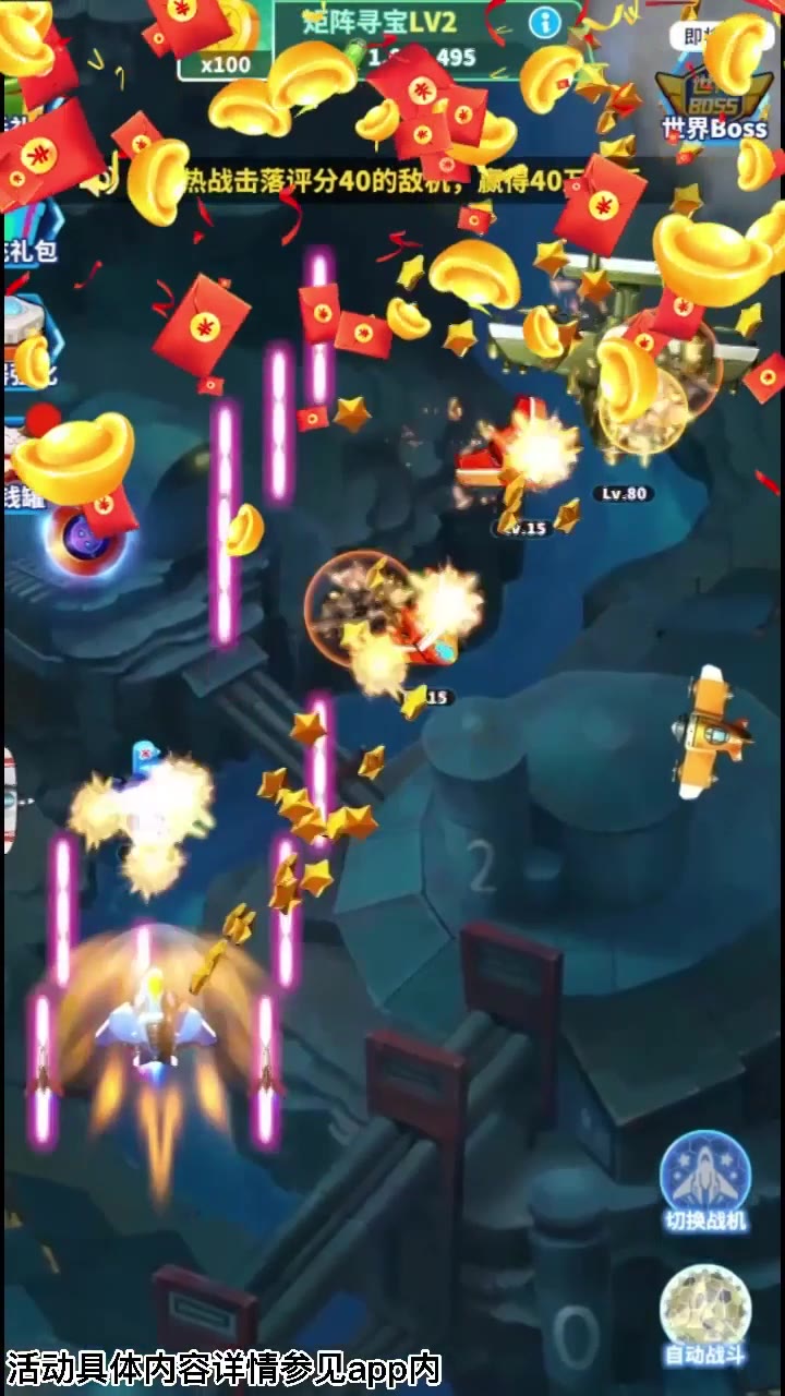 勇闯黄金岛,一款引人入胜的射击小游戏。在这款游戏中,玩家将解锁多种战机,持续升级,与众多强大的BOSS展开激烈的战斗。每个关卡都设有丰厚的红包奖励,轻松射击后,红包便可直接到账。
