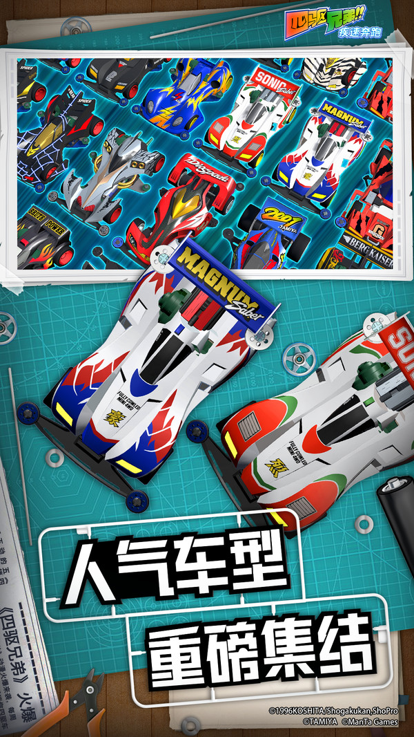 冲刺吧!旋风冲锋与龙卷风!《四驱兄弟:疾速奔跑》隆重登场!本作由日本小学馆和集英社的正式授权IP倾力打造,漫塔游戏联合开发。在这里,玩家将能沉浸于经典剧情的原汁原味,体验Mini四驱车组装与竞速的真实乐趣;游戏中可以随心所欲地选择车壳、底盘、马达等配件,利用众多零部件自由组合出最炫目的新车。
