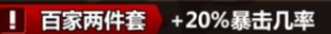 百家两件套:装备两件道家装备可获得来自装备的暴击几率加成+20%。