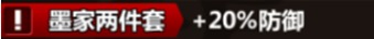 墨家两件套:装备两件墨家装备可获得来自装备的属性加成+20%。