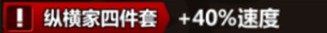 纵横家四件套:装备四件纵横家装备可获得来自装备的速度属性加成+40%。
