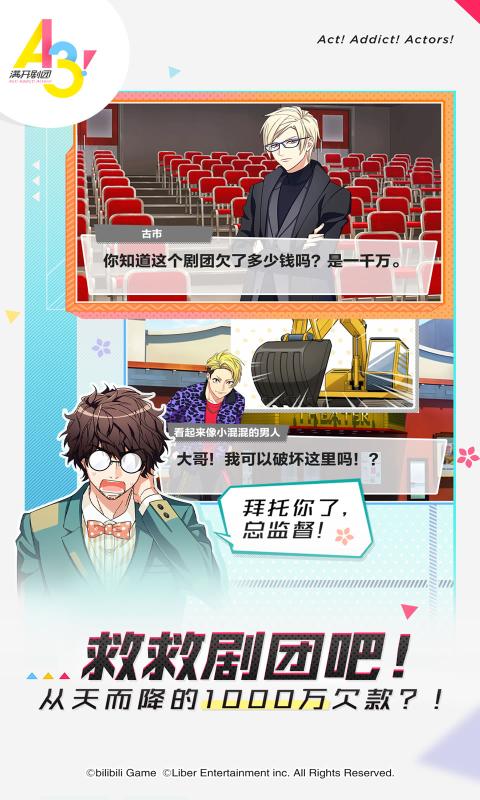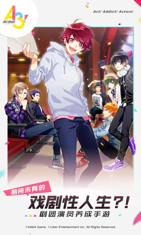 本次bilibili将官方代理a3的国服版本,游戏以培育帅哥演员为主题,玩家将担任一名舞台剧剧团的总监督,你需要努力的培养你的剧团成员们排练话剧、舞蹈剧等练习,通过组合队员来创收!
