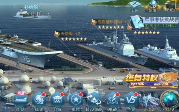 3、同时会陆续得到其他一些12级别的船,第二天登陆游戏会送戴高乐级航空母舰,可以考虑把航母换成戴高乐。