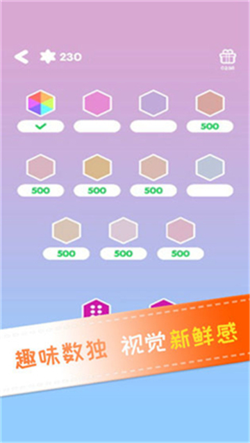 在神奇六边形数独这款游戏中,清新简洁的画面搭配轻松愉悦的背景音乐,所为玩家营造出一个休闲性十足的游戏氛围。游戏在一定程度上非常考验玩家的聪明才智,不断开动你的脑筋来将谜题一一解开,感受游戏的独特魅力所在。