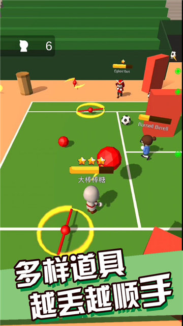 2、玩家将会在一个网球场大小的场地中展开游戏,玩法很,用手中的道具尽量砸中更多的人,同时灵活闪避他人的攻击即可。