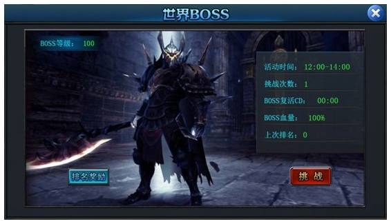 世界Boss每日刷新的时间是固定的,每次只出现两个小时,如何在两个小时内将其击杀呢?这是非常考验装备和技术,当然还有强大的小伙伴后援团的人数啦!