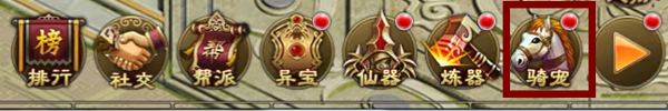 坐骑系统也是通过主线任务开启,系统开启后玩家可点击主界面右下角三角按钮,然后点击“骑宠”按钮进入。