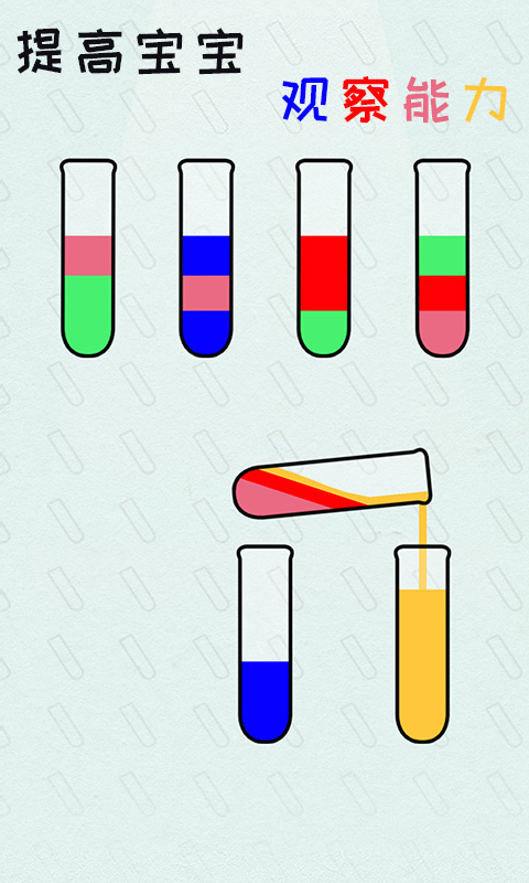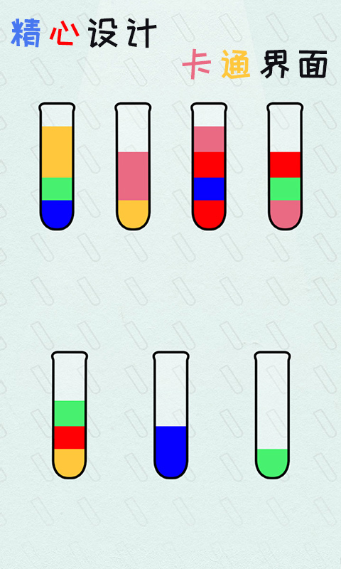 色彩之旅手游作为一款玩法比较,但是超级容易让人沉浸其中的小游戏,发挥你的聪明才智,去解决各种各样的问题,成功的将不同颜色的水放入试管之中,游戏操作比较的简单,但是排序比较的困难,难度会随着你的挑战而不断的增加,激发你的好胜心,让人停不下来。