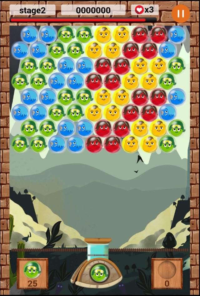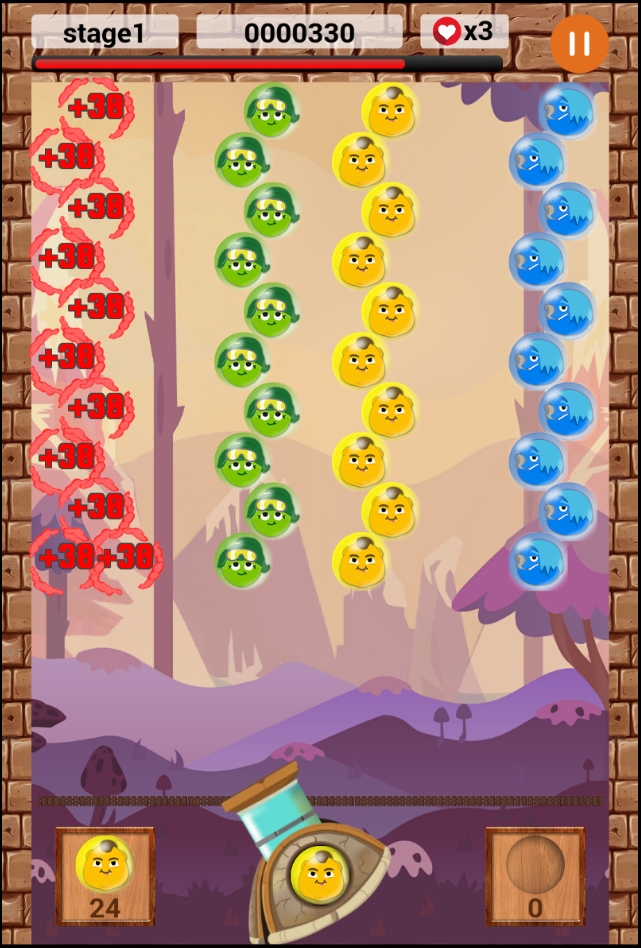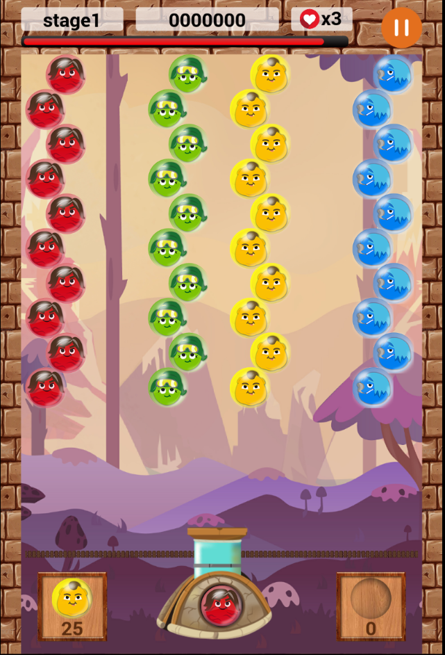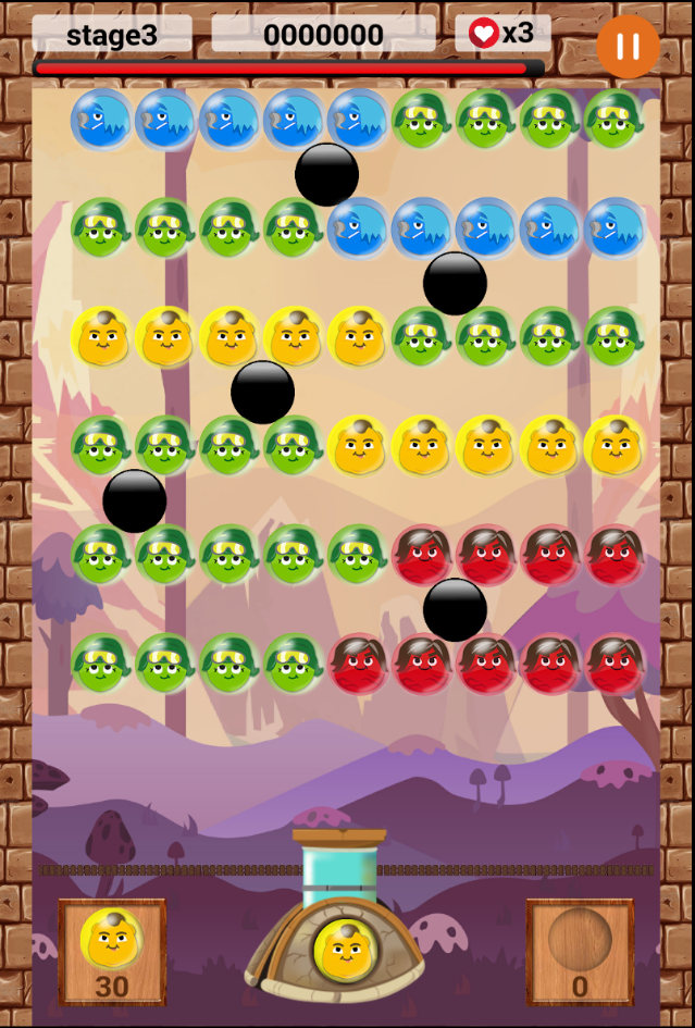 由炮台发射泡泡,为即将落下的屋顶解除威胁,是80到90年代间电玩常见的题材,『圣君侠:灭黑球』提供了此一泡泡发射、解除威胁的手机游戏。