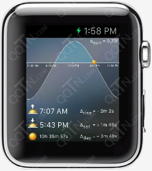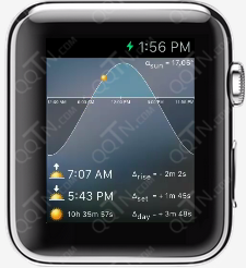 Sunrise Sunset for Apple Watch版可以在你的Apple Watch设备中显示当日当时的太阳高度图,为您勾画出太阳从日出到日落的高度轨迹。