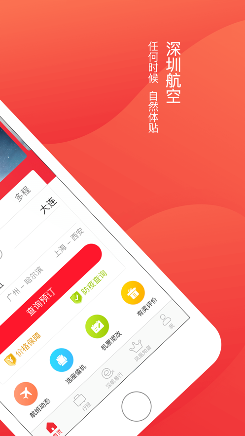 深圳航空客户端为您提供便捷的出行办理、出发服务及机场服务,特惠机票预定总是触手可及,查询值机变更优惠更是令人心动。让您随时随地享受高品质的航空服务!