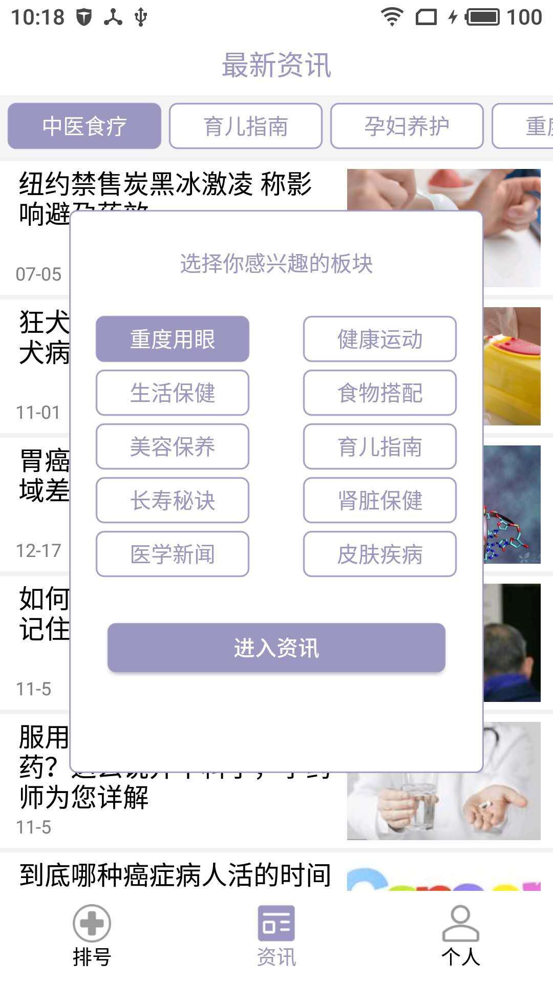 支持附近医院挂号预约,每天更新各种医疗资讯。