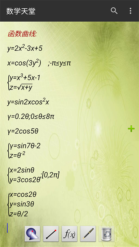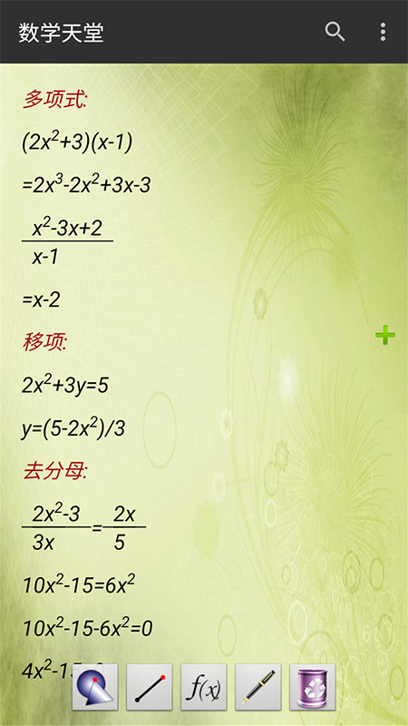 数学天堂app,必备的计算助手,支持方程式推导、方程求解、方程曲线绘制、极限求值等多种功能,完美解决数学学习过程中遇到的计算、绘图、格式化输入问题,让数学学习更省心。