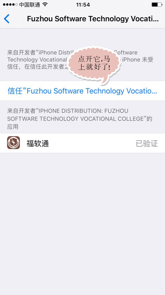 当您的iPhone手机版本是iOS 9.0,在安装福软通时,需要执行以下操作: