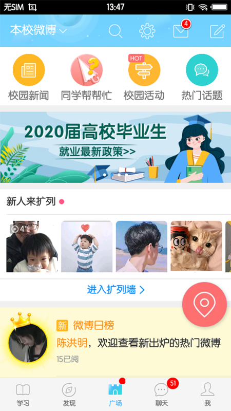 5、无负担Get热点:触手可及的,通知消息实时推送,感受有温度的校园文化;