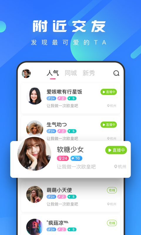 【附近】看附近,在线邂逅附近的有缘人,结交你心动的那个TA。