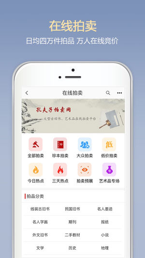 ,专业的古旧书、艺术品交易平台;书店,八万店铺,千万商品在线销售;在线,日均四万件拍品,万人在线竞价;艺术品收藏,珍品上拍,藏家云集;搜索,海量资源,极速搜索。