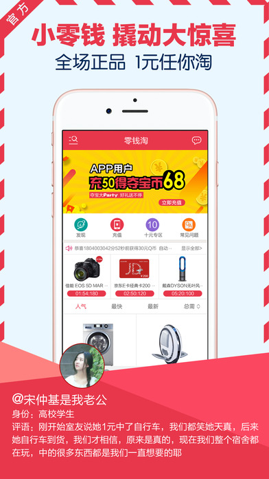 零钱淘iOS版,一款手机购物软件。新用户注册还立18元红包,全场海量商品,正品有保障,1元钱任你淘,通过零钱就有机会中大奖。中奖规则一目了然,绝对公平公正公开。下载零钱淘app,用小零钱,撬动大惊喜!