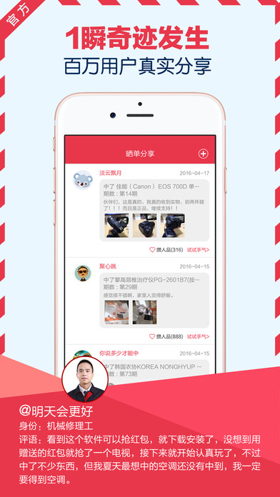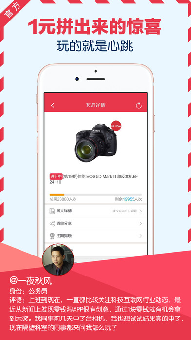 当所有的份数售完后,立即揭晓这个iPhone6S的获奖者
