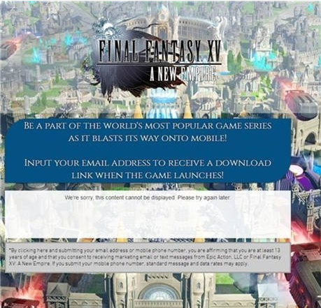 《最终幻想15:新帝国》现已在官网开启预约注册活动,玩家只需填写邮箱和姓名,即可在游戏有进一步消息时收到通知。然而,开发商尚未公开游戏的详细信息,值得一提的是,本作的制作公司为一家名不见经传的小公司Epic Actn,而Machine Zone旗下则设有名为Epic W的子公司,目前二者的关系尚不明确。