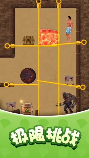不让岩浆伤害到自己和宝箱,即可成功闯关;
