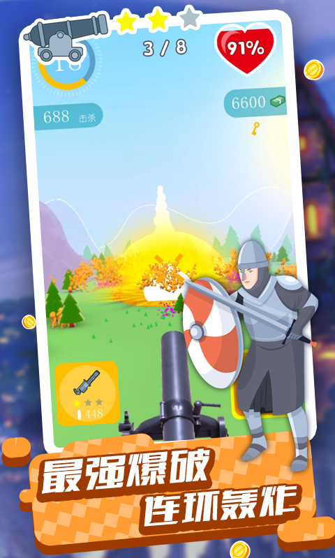火柴王国保卫战是一款极具趣味的策略塔防游戏。在游戏中,玩家需要操控大炮,消灭所有敌人,绝不可让他们逼近城池,巧妙利用道具以增强大炮威力,将所有敌人一一消灭。