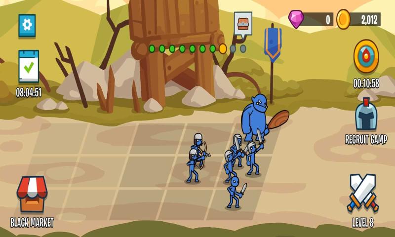 十分有趣的策略类游戏。游戏中,玩家将会作为火柴人们的将领,带领火柴人们走向胜利!利用资金招兵,将同样等级的士兵合成升级,提升他们的装备和战斗力。,将敌人打个落花流水!