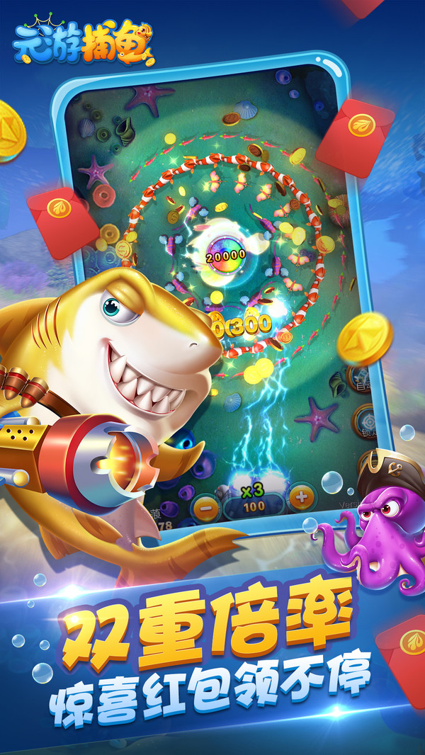 元游捕鱼手游分享给大家,这是一款捕鱼,游戏提供经典捕鱼玩法,全新海底世界开放,登录即送炮台弹头等,加入各个竞技场开启捕鱼,红包话费红福利领不停。
