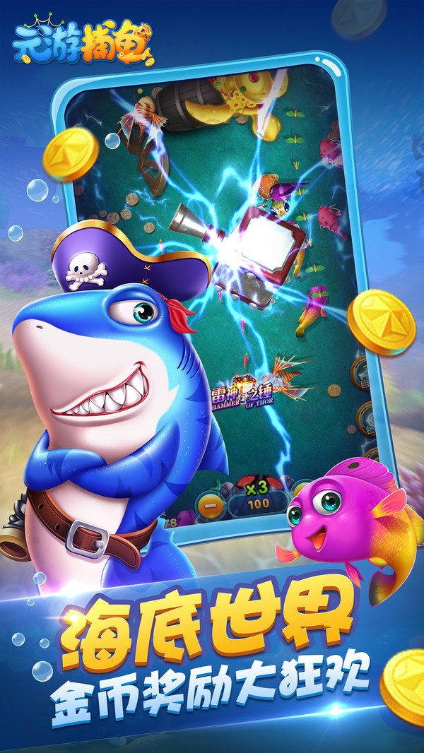 趣味性十足的休闲。唯美的游戏画风、经典的游戏场景带你感受不一样的精彩对决、上百种鱼类可供玩家自由挑战、各种捕鱼玩法趣味性十足、游戏中还有更多豪华大礼包相送、登陆就送金币!