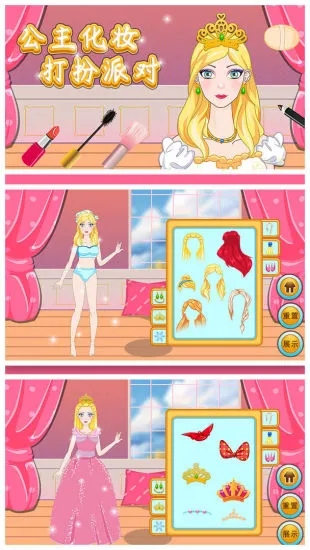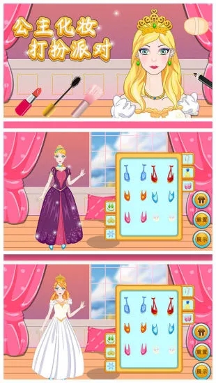 公主化妆打扮派对是一款儿童类的公主换装APP,分为化妆和换装两个环节,玩法丰富有趣,满足小朋友对公主换装玩法的需求,可培养孩子们的审美养成和色感认知。