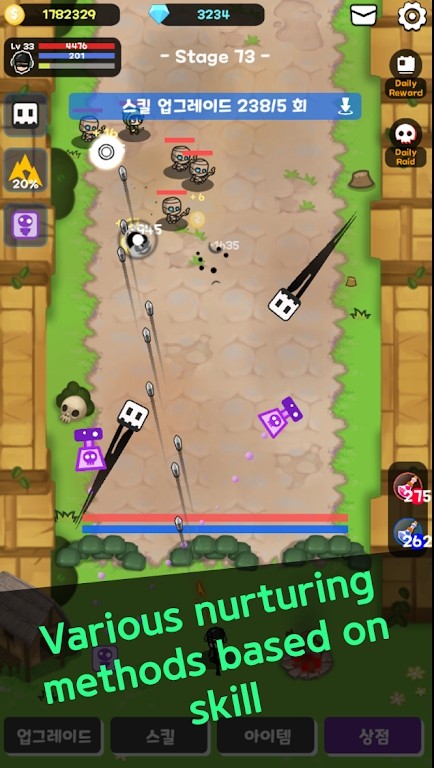 1、超多的武器等你解锁,通过不断的游戏获得大量的金币,购买更加强力的武器。