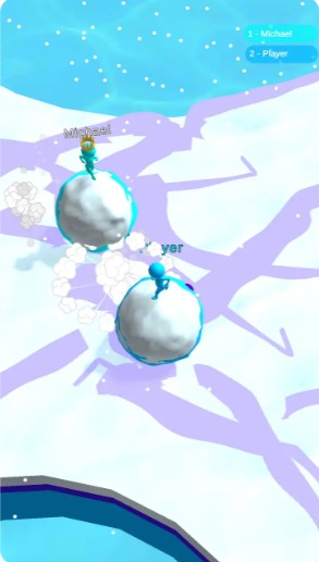 滚雪球,一款3D橡皮人画风,有着io玩法的,滚动雪球,越来越大,虽然速度下降了,但是可以吃掉其他的对手,在缩小的冰上面留到最后。