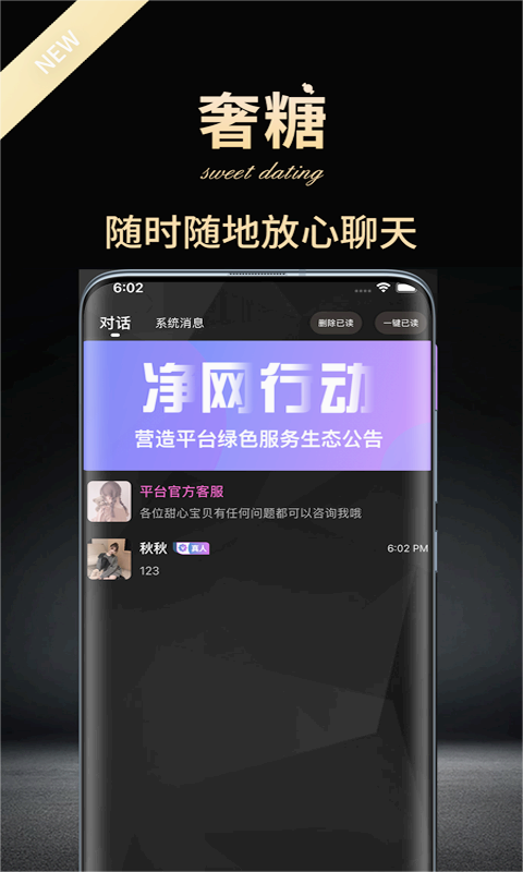 奢糖app,真人认证,严格审核,在线聊天互动,邂逅心动男神/女神。分享个人生活动态,随时随地放心畅聊,真实又安全,为用户带来更贴心的交友服务,轻松找对象。