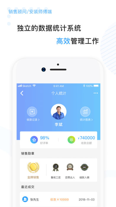 让【销售】能及时接收订单,通过数据统计,了解自己的工作能力,树立服务。