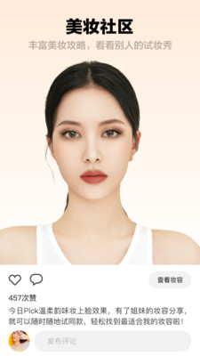 1、百变风格妆都能立刻尝试!只需上传一张你喜欢的妆容图,就能轻松仿妆。